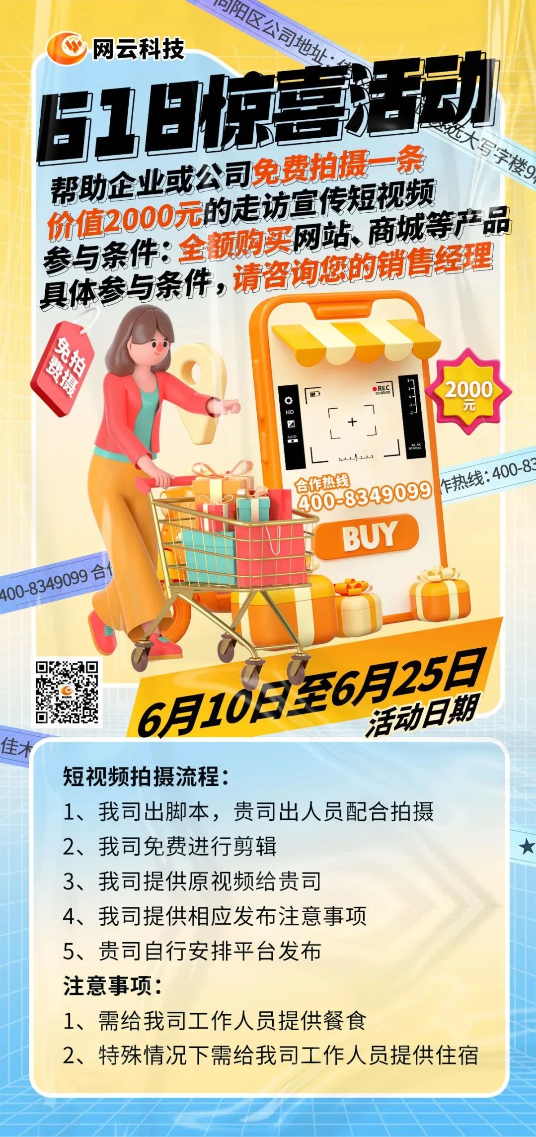 我們為了給企業解決這一問題難點,在6·18活動期間,特推出助力企業的活動-為新合作的企業免費拍攝一條走訪宣傳短視頻。