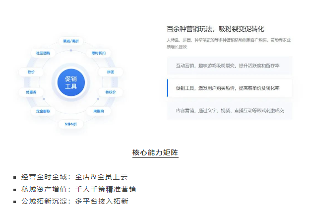微盟智慧零售解決方案,通過門店數字化、導購數字化、營銷數字化、會員數字化等多個維度,幫助企業實現全時全域經營,構建私域資產,加速零售企業數字化升級。