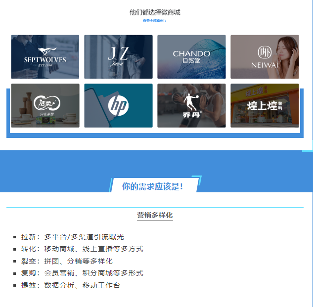 微盟微商城是全渠道小程序電商解決方案,商家可利用統一后臺開通、管理和經營微信、QQ、支付寶、百度、小紅書等渠道店鋪,實現流量沉淀、轉化變現、粘性強化和裂變增長的全流程,以私域長期經營帶動品牌持續增長。
