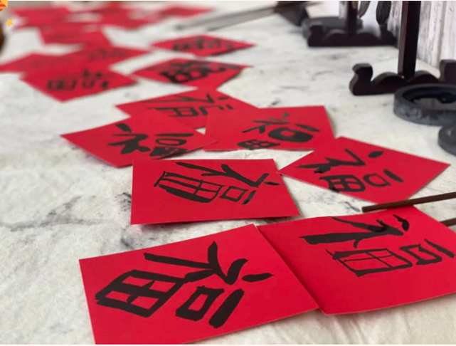 興高采烈迎新年,鞭炮隆隆寫對聯,
